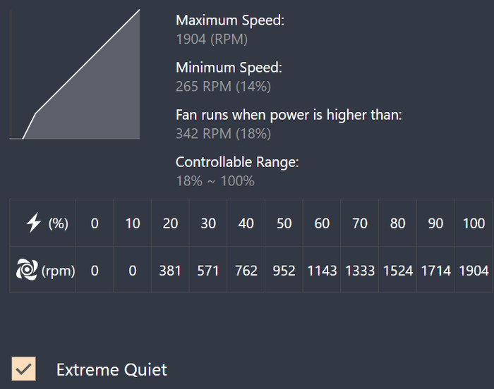 We did set our own fan curve at the Asus Armoury Crate software to reduce noise levels. Below is the fan curve of the Dark Rock Elite CPU Fan: