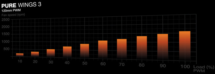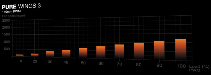The 120mm PWM has a different fan curve from the 140mm and it goes up to 1600rpm at 100% fan speed.