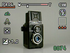 | Most of the control buttons are located on the camera's back as on most models. Though the multiple options and icons may intimidate the novice, actual operation is pretty simple. Even advanced settings have dedicated buttons and are easy to access in both record and play modes, with the cross oriented buttons and the center "SET" button. The latter, when pressed brings up an instant view of the last shot recorded. The control dial at the upper right acts also as a selection button when pushed, so controlling multiple exposure settings is relatively easy and quick when mastered. A major drawback however is its small size, which is suitable only for people with small hands. The zoom control button is easy to access and has a positive feel. | |