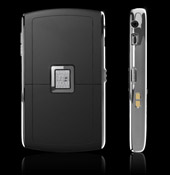 The first thing one notices about the 8800 is the visual similarity to the highly successful Pearl. The trackball is the same size and front and center of the device. The glossy finish is present in a sort of "midnight blue" color on the front and back and the same chrome accents that are found on the Pearl are present on the 8800.