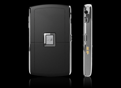 The first thing one notices about the 8820 is the visual similarity to the rest of the BlackBerry lineup. The new "Family" look is apparent in the 8800, 8300 and 8100 series devices. The trackball is the same size and front and center of the device. The glossy finish is present in a black color on the front and back and chrome accents on the sides and top.