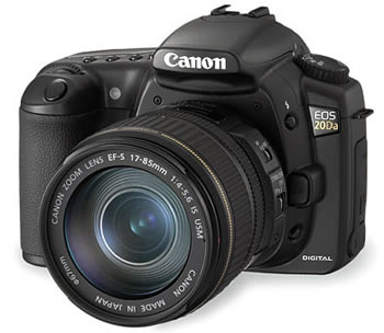 The EOS 20Da is compatible with all Canon EF and EF-S lenses including select image stabilised telephoto lenses. Photographers can also attach the EOS 20Da digital SLR to a telescope through the use of widely available T-mounts.