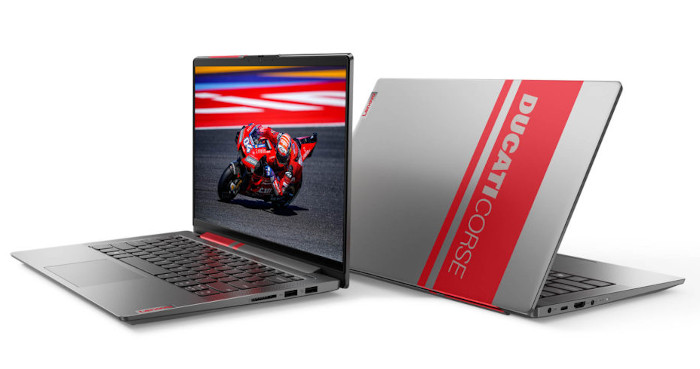Lenovo’s branding can be seen on Ducati racing bikes and MotoGP riders’ uniforms, and now, for the first time, Ducati’s branding will be on the special edition thin and light laptop: The Lenovo Ducati 5.