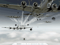 This test is a combat flight simulator written for older hardware (DirectX 7). Particles are used a lot in this test - smoke and vapor trails, flak and gunfire, and explosions are produced using point sprites and quads.