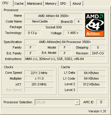 The CPU we used was an AMD Athlon64 3500+, running at ~2200MHz.