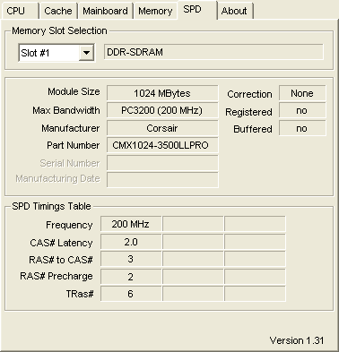 In this review, we will be comparing the Corsair 3500LL PRO modules with some memory modules we tested several weeks ago, the Mushkin XP4000 - Redline (2x1024MB) dual-rank modules (2GB). Below you can see the SPD Timings for the Mushkin memory, according to CPU-Z.