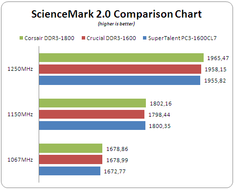 Lastly, in Science Mark, the Corsair DDR3-1800 achieved the highest performance
