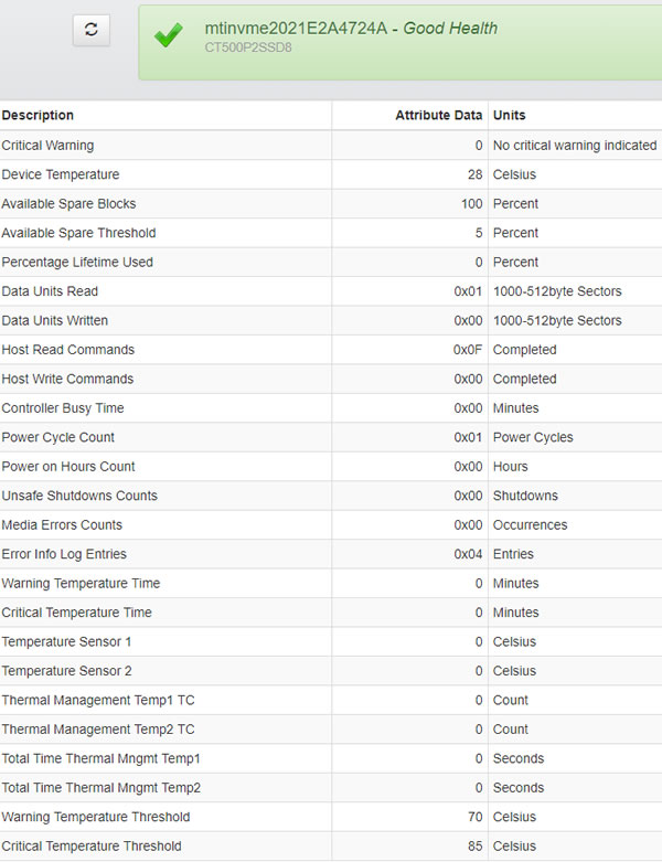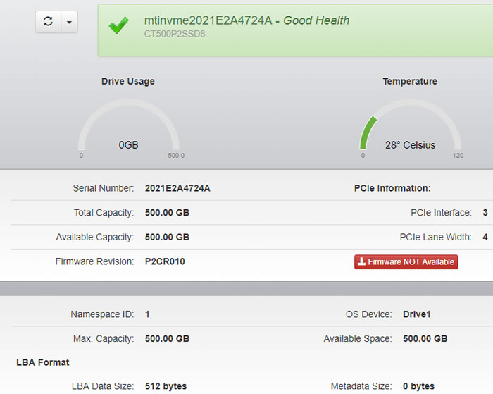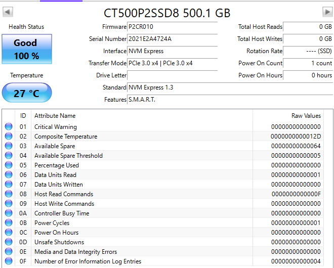Before we start our tests, we can get some info for the drive via the Crucial Storage Executive software
