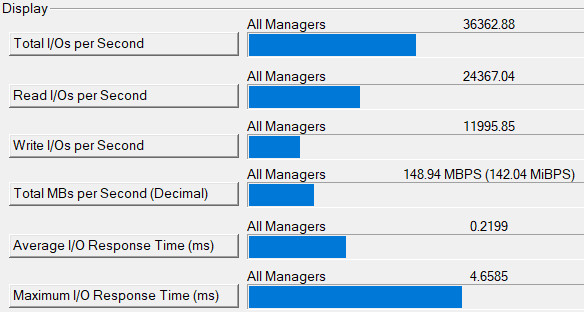 At the I/O Meter test, the Crucial 510 2TB NVME SSD showed low (!) performance with only 36.362,88 points, where Samsung 990 Pro for example can reach easily 150.000 points.