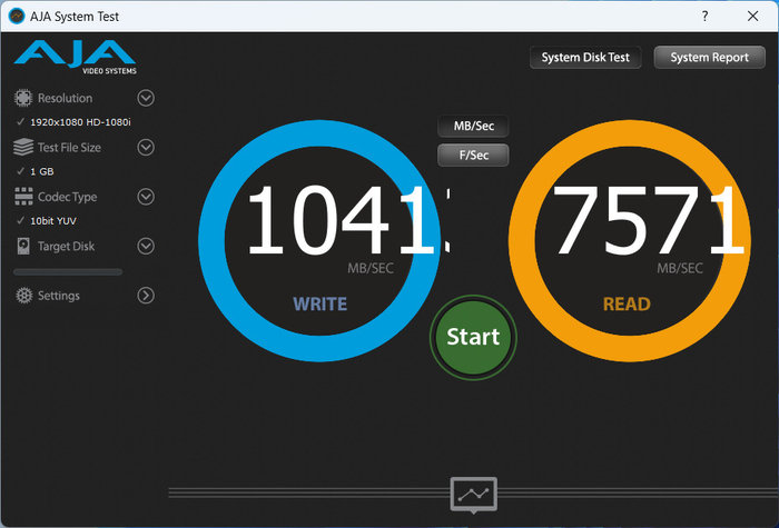 The first test and quick result come from the Samsung Magician Storage software that includes a build-in benchmark. The drive reported back around 12GB/sec reading and around 11GB/sec writing speeds, which is what also Crucial mentions in their specifications.