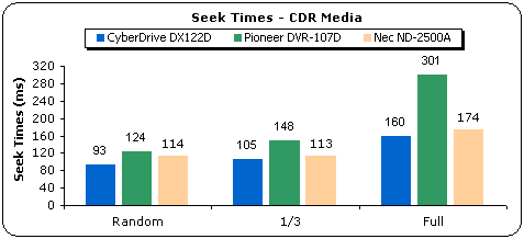 The comparison outcome with pressed CD is similar with the pressed cd seek time comparison.