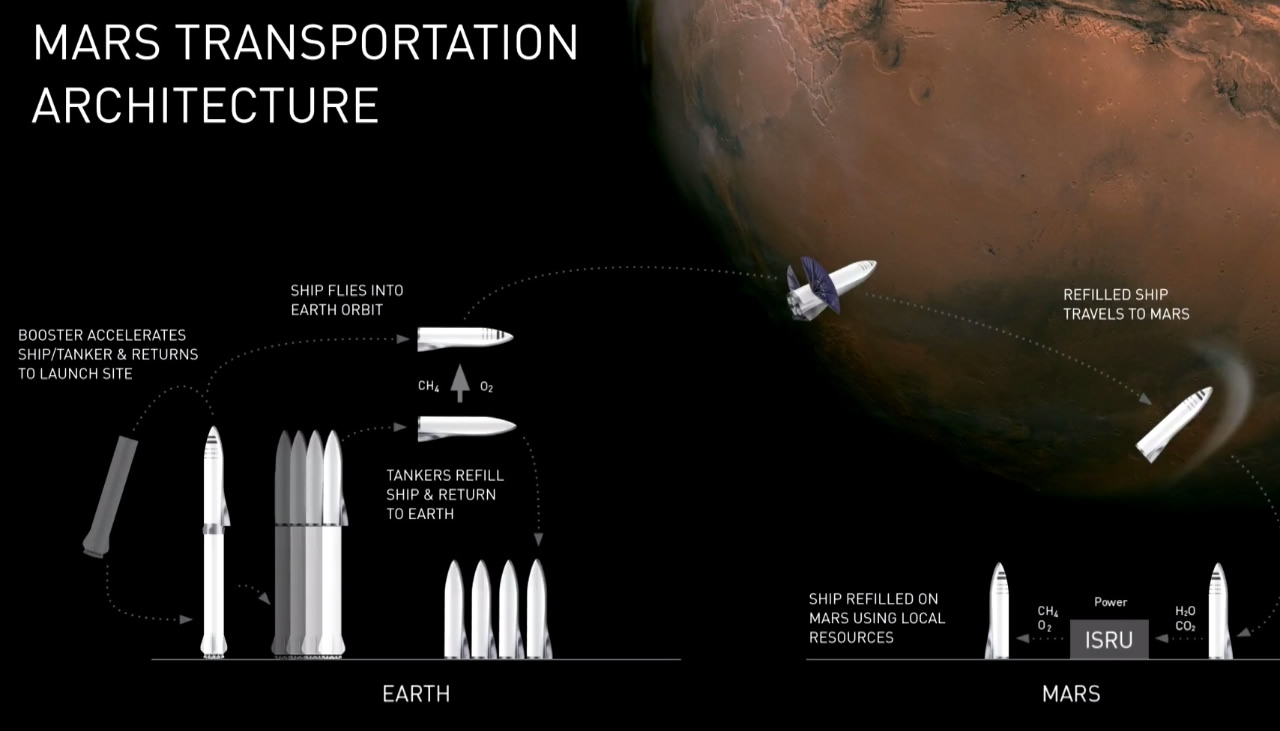 Musk also unveiled a new plan for the first BFR to land on Mars in 2022, followed by crewed missions in 2024. Some years ago he was promising to send an unmanned "Red Dragon" spacecraft to the Red Planet by 2018.