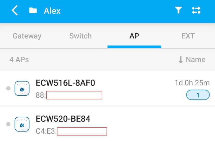 After we press Finish, we can start viewing our installed devices under the AP tab.