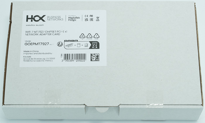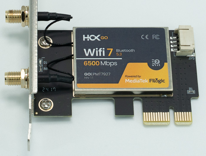 The second PCIe card comes HCX with the codename GOEPMT7927 rev 1.1 and its based upon the MediaTek MT7927 chipset.