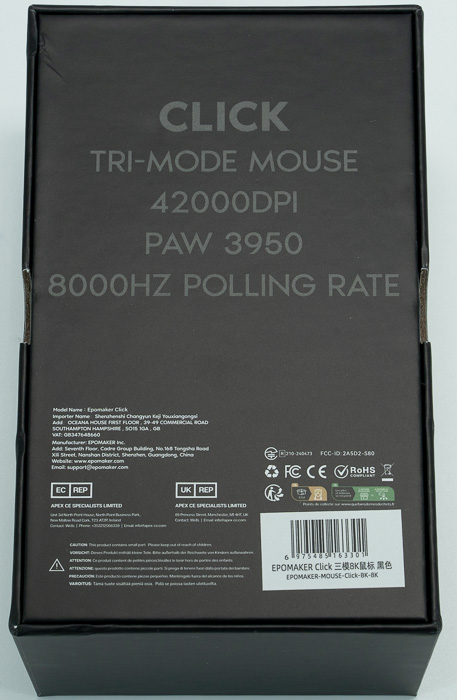 The retail box is simply black with the Click name at the top along with other interesting features, like the 42.000 dpi and the 8000Hz polling rate, clearly aimed at gamers and competitive users. The product can be found on the official online website to buy for $59.49.