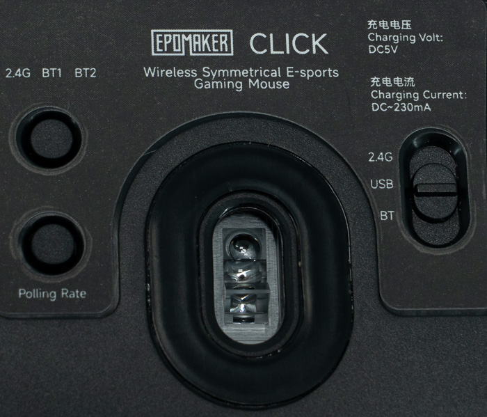 There is one switch for selecting the current mode (2.4G, USB-wire, BT), modes 2.4G, BT, and polling rate as well. The mouse uses a Pixart PAW 3950 sensor that was announced back in 2024. The PixArt PAW3950 is an upgrade to the famous PAW3395. The PixArt PAW3950 sensor is capable of a maximum sensitivity of up to 30000DPI, a tracking speed of 750IPS, and an acceleration of 50G.