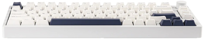 The P75 is a 75% sized keyboard while retaining commonly used directional and F keys, providing an easy transition for new users compared to smaller layouts. A metal knob in the top right corner allows for effortless media control. The product has a 324.2 x 135.6 x 45.3mm size and weight of ~1.65kg, due to the aluminum construction with powder coating, There is included a 4000mAh battery, which should last for a long time. There is no flex with this keyboard, it's a solid piece. There is no palm rest included, but EPOMAKER sells them to add to your liking.