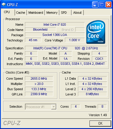 - Intel Core i7-920 @ 2.66GHz