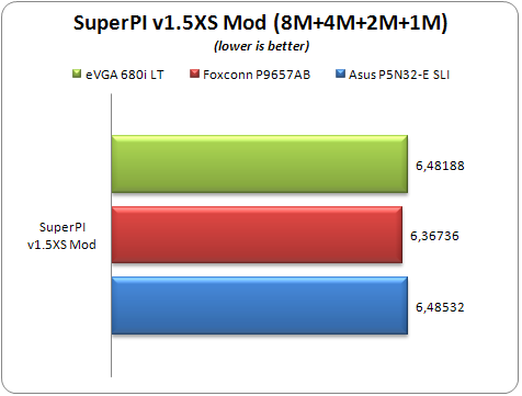 The Intel P965 chipset based motherboard offered best performance. The Foxconn P9657AB had the lowest 8M+4M+2M+1M time (mins).