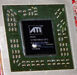 According to sources, the R520 core is design with 32 pipelines but it will actually utilize less. Die size is at 16mm x 18mm and will support Shader Model 3.0 and Direct X 9.0c. Speculations indicate that the R520XT sample is will be clocked at 650Mhz core and support 512bit Memory internal bus but only 256biy controller.
