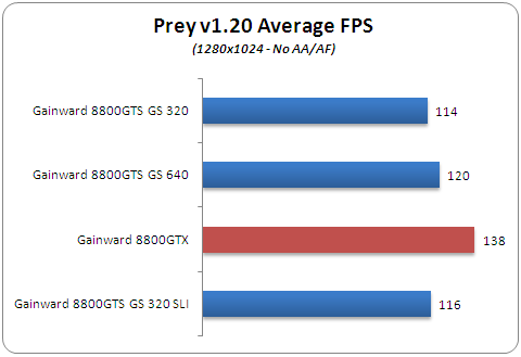Without enabling AA/AF, the Gainward 8800GTX outperformed the 8800GTS 320SLI!