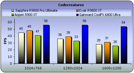 The Codecreatures benchmark is written with Microsoft's DirectX 8.1 API and incorporates the use of Vertex and PixelShaders popular on next generation 3D accelerators.