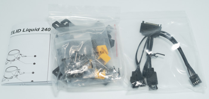 In the retail package, you will find also the Gelid GC-4 thermal paste 1g which is supposed to give you the best possible performance for this product. There are two 120mm fans (the same as with the Liquid 120 AIO) and also have ARGB lighting. Both fans have a 4-pin PWM header while the ARGB header it's a 3-pin design. The ARGB header can be connected in the chain (pump->fan1->fan2) so with one header you can have all three products connected to the ARGB header.