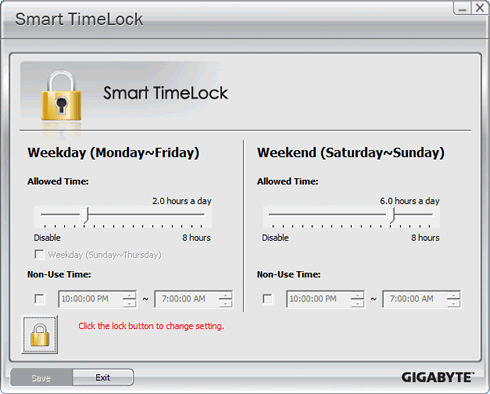 Smart TimeLock allows you to schedule when your computer can or can't be used. It's done via a simple user interface that allows you to set between which times of the day that the computer can be used and for how many hours it can be used during that time. This is a good tool especially for parents who want to limit their children's PC usage. Smart TimeLock also allows for different usage scenarios during weekdays and the weekend: