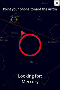 The result is a whole new sky mapping experience. Point the phone at any part of the sky, and Sky Map gives you a specially constructed map telling you what stars, planets and constellations you're looking at. You can even search for stars and planets by name, and the phone displays an arrow telling you how to move to face the object you're interested in. The phone can't "see" the stars as such: it works out their positions mathematically from the sensor readings. One quirky consequence of this approach is that Sky Map doesn't need a line-of-sight to find the stars and planets. It will just as reliably display stars you can't see on a cloudy night, stars you can't see because the Sun is shining, stars you can't see because you're indoors, and even stars in the opposite hemisphere that you can't see because the Earth itself is in the way.