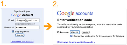 Google expects that the set up of the 2-step verificationmay take up to 15 minutes to enroll. A set-up wizard will guide users through the process, including setting up a backup phone and creating backup codes in case they lose access to their primary phone. Once users enable 2-step verification, they'll see an extra page that prompts them for a code when they sign in to their account. After entering the password, Google will call users with the code, send them an SMS message or give them the choice to generate the code for themselves using a mobile application on their Android, BlackBerry or iPhone device.