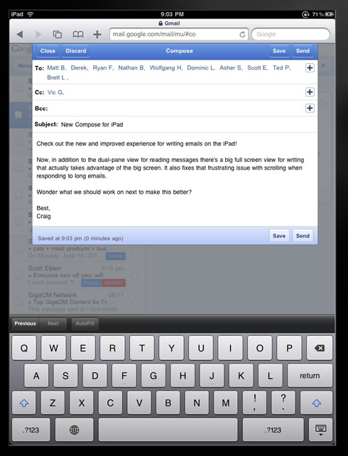 In April 2009, Google announced a new version of Gmail for mobile for iOS and Android. Today the company announced an improved experience for writing emails on Gmail web interface for iPad.