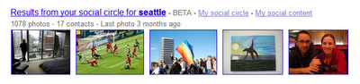 Google has also added some new features to the search. For example, they' ve added social to Google Images. Now when you're doing a search on Images, you may start seeing pictures from people in your social circle. These are pictures that your friends and other contacts have published publicly to the web on photo-sharing sites like Picasa Web Albums and Flickr. Just like the other social results, social image results appear under a special heading called "Results from your social circle." Here's what it looks like: