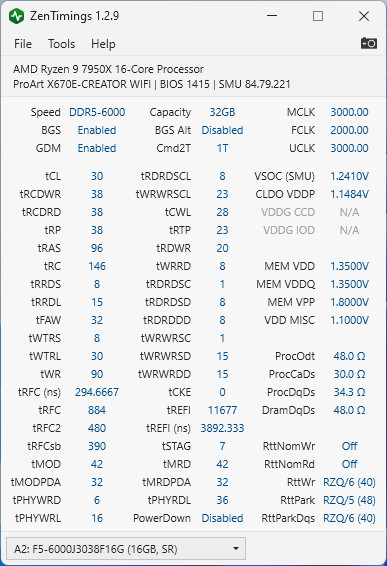 From our testing, you can get tighter timings at 6000MHz with CL30 and 1.35V. Note that you may get worse or better timings depending on your system and voltages. We also pumped the FCLK to 2133MHz that supposed to give higher performance as well.