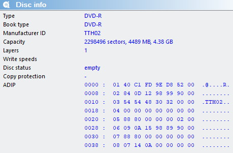 The RIDISC 16X DVD-R media comes with the TTH02 ID tag