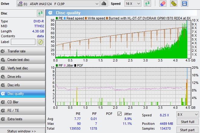 The RIDISC 16X DVD-R media while burned OK, seems at the end producing high error rates, which in our opinion aren't acceptable. We cannot blame the drive entirely, our media was not scracthed visually so we cannot recommend it paired with the HLDS GP96Y drive.