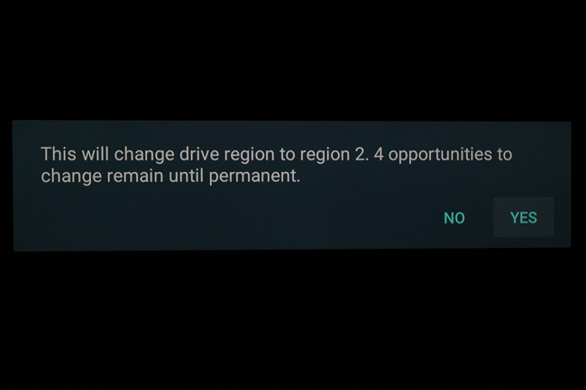 Since we didn't had set the region of the PortableDVD, the app prompt us to select a region.