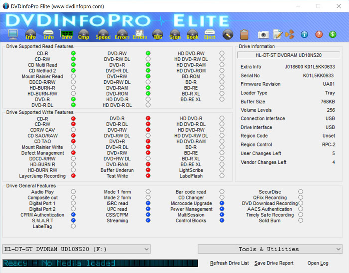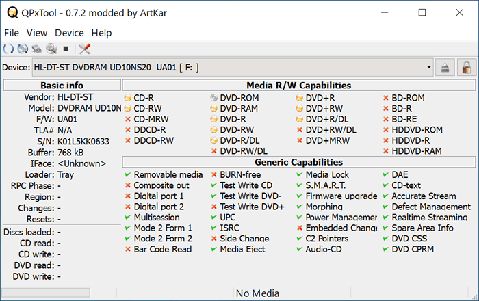 Another free software called QPxTool can be used to demonstrate the drive's features: