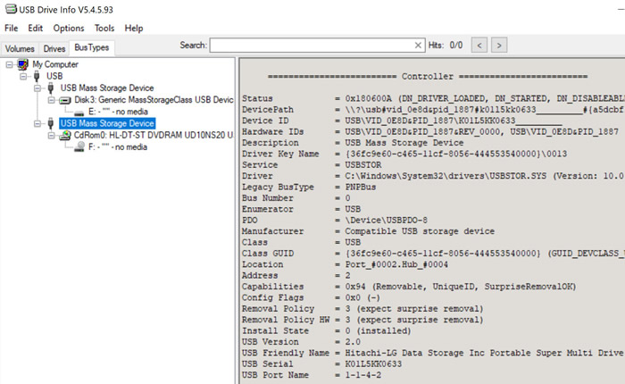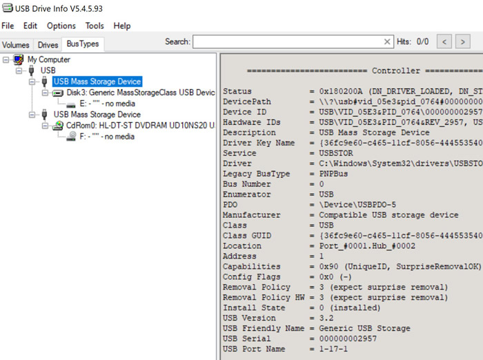 While with USB Drive Info, we noticed the drive uses only USB2.0 connection, while the external ports use up to USB3.2