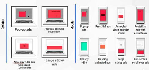 According to Google, the majority of problematic ad experiences are controlled by the site owner - such as high ad density or prestitial ads with countdown.
