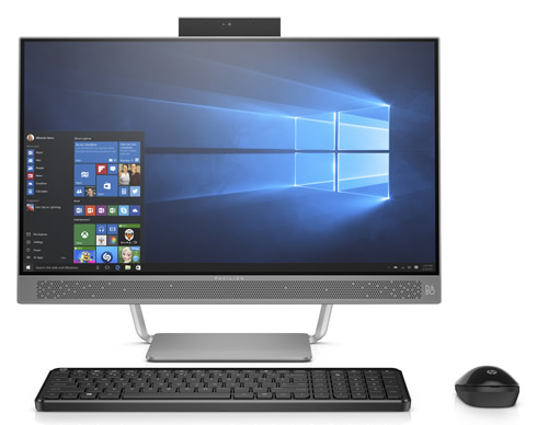 HP is now offering two new HP Pavilion All-in-Ones in 23.8" and 27" diagonal displays with an edge-to-edge display or a micro edge display option on select models that further reduces the border 75 percent for more viewing area compared to the edge-to-edge display. The micro edge display tilts from -5 degrees to 25 degrees while the edge-to-edge display tilts from 0 to 25 degrees. IPS displays are available in Full HD or Quad HD, with optional touch and audio custom-tuned by experts at B&O PLAY.