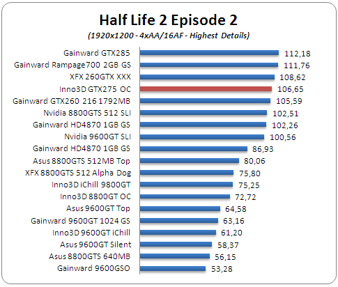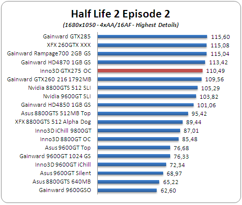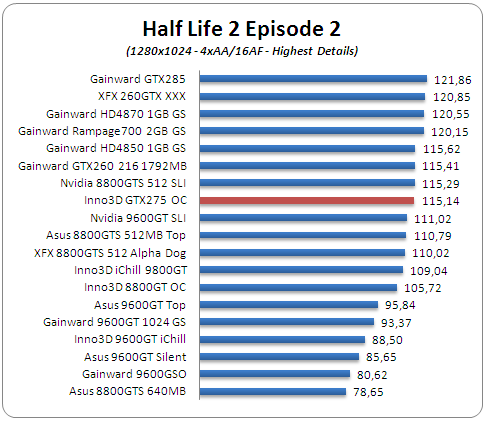 The Inno3D GTX275 had good performance, although it was slightly slower than the XFX GTX260 XXX: