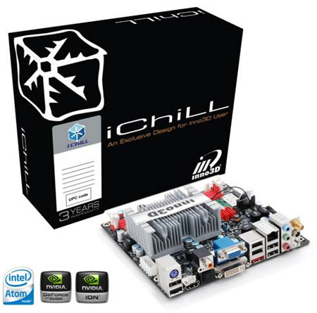 The Inno3D ION iChiLL Edition motherboard packs a ton of features in small dimensions making it very appealing to users. The Nvidia ION platform is based on an Intel Atom 330 CPU plus a GeForce 9300 GPU that enables true High Definition Video playback, which is something that not many other mini-atx solutions can achieve. Moreover, some extra features of the Inno3D ION iChiLL Edition such as the pre-installed Wifi mini PCI-e card with external antennas for better reception and the external power brick that replaces the need for a power supply make the device even more attractive.