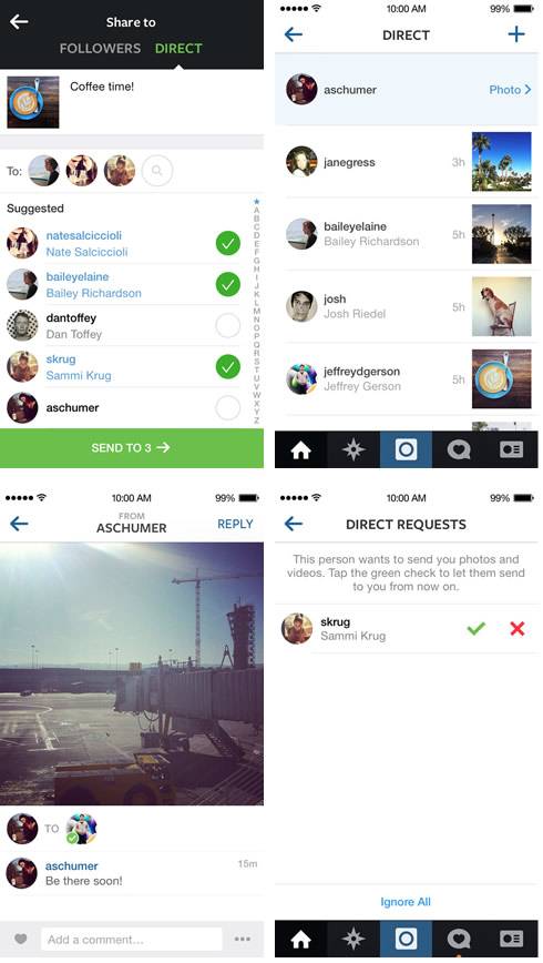 Instagram today brings Instagram Direct, a new way to send photo and video messages to friends.