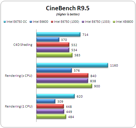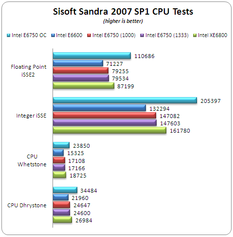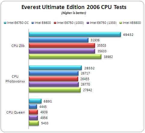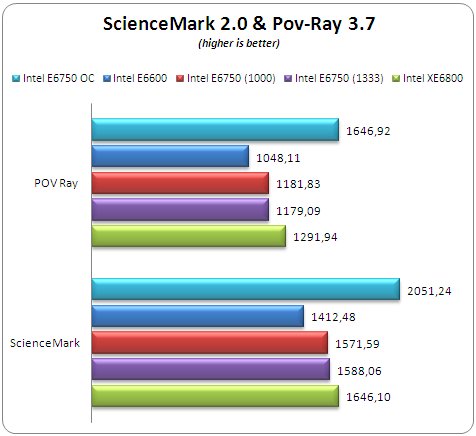 And finally, here are several test results after overclocking the Intel E6750 up to 3.72GHz. As you will notice, the performance improvement is... significant!