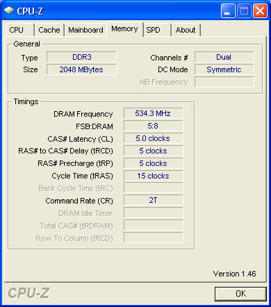 - Memory: 2x1GB OCZ DDR2-1066 (1067 @ 5-5-5-15-2T, 2.20V)