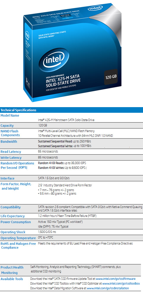 Mainstream SATA SSD is now $199 for an 80 gigabyte (GB) drive. Users can double the storage capacity with a 160GB X25-M drive for $415. The company has also added a new 120GB version of the Intel X25-M for $249, which offers the best dollar-per-GB value in the Intel X25-M SSD line.