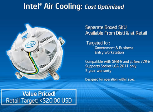 Intel is offering an aluminum cooler with the new processor priced at about $20. This cooler will be efficient enough to dissipate the heat off processors with 130 W TDP.