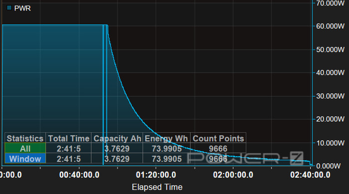 On the other hand, the JSAUX Rog Ally replacement battery 65Wh pack, does support high charging speeds, and starts at 60watts for 55 minutes and after that point gradually drops to 0% when the battery is full.