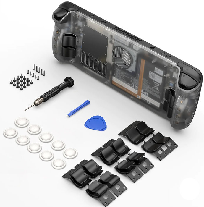 At the back there are already pre-installed buttons with the original SteamDeck height, you can change them if you like.
