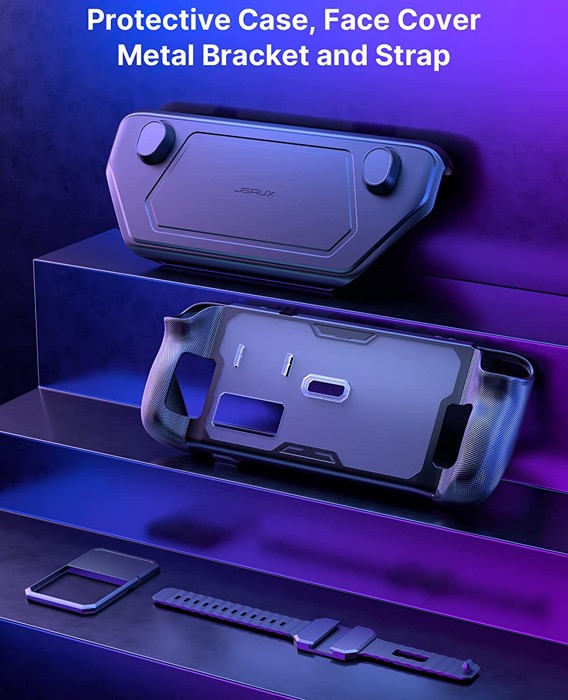 - 【Complete and flexible】This accessory consists of a protective back case with its own metal stand, a strap to attach other accessories, and a front cover to use when the Steam Deck is idle.